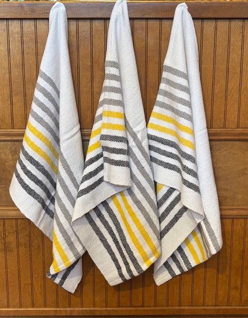 These beautiful handwoven towels are 100% cotton that are as beautiful as they are functional.  They are made from the finest Brazilian cotton and are super absorbent.  Washer and Dryer safe.   Approximately 21" x 26"